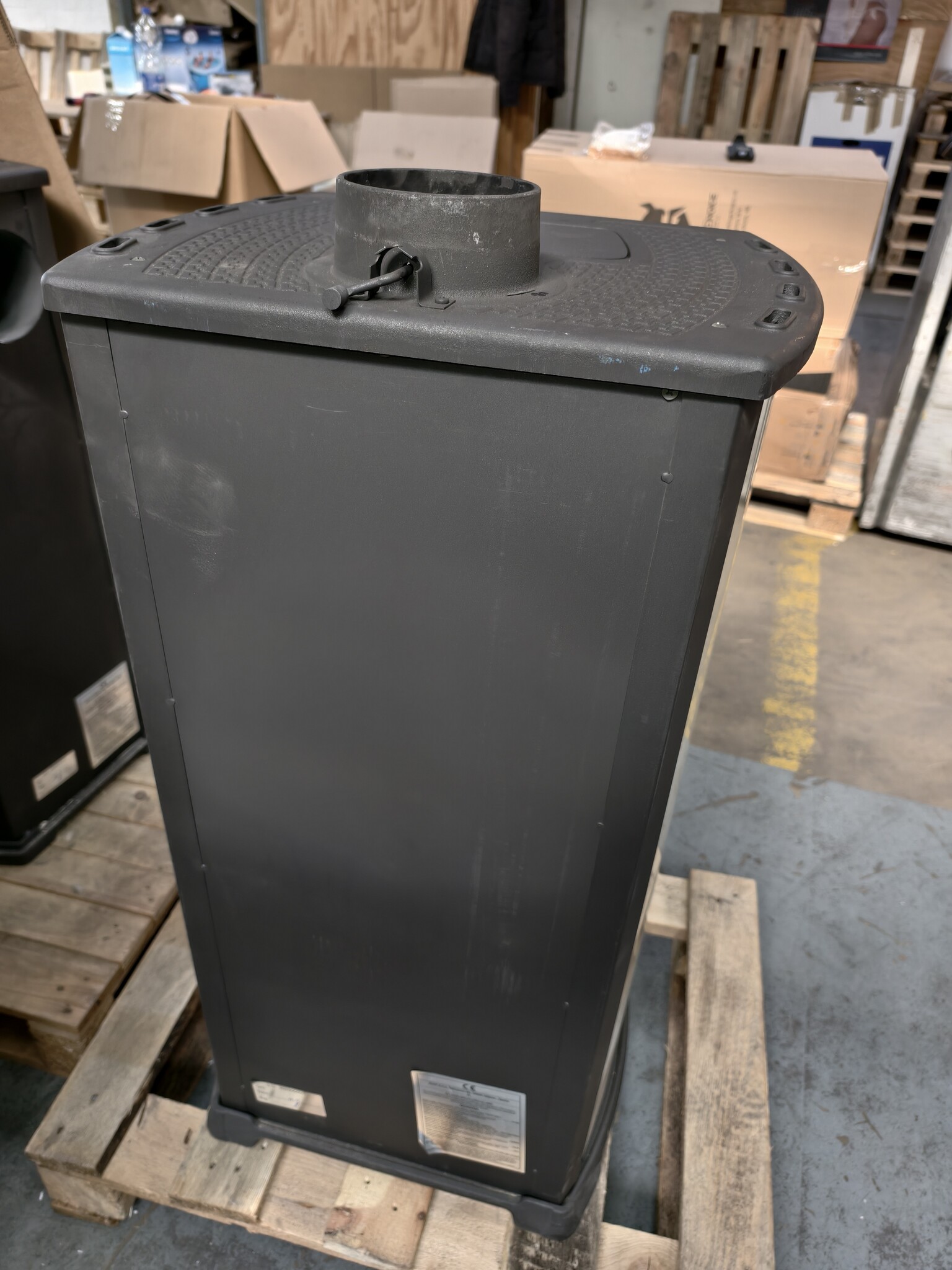Let op: Dit betreft een gebruikt product. De kachel vertoont lichte gebruikssporen en krassen aan het oppervlak, wat de functionaliteit echter niet aantast en bijdraagt aan de unieke charme van een product met een verhaal.